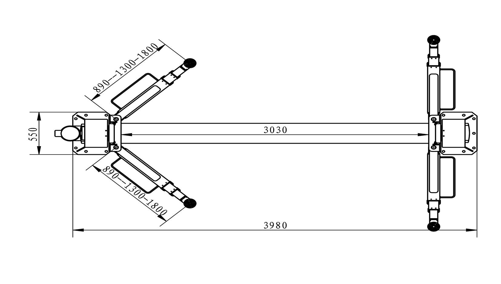 ● 4 pcs 3 stage arms 890-1300-1800mm;