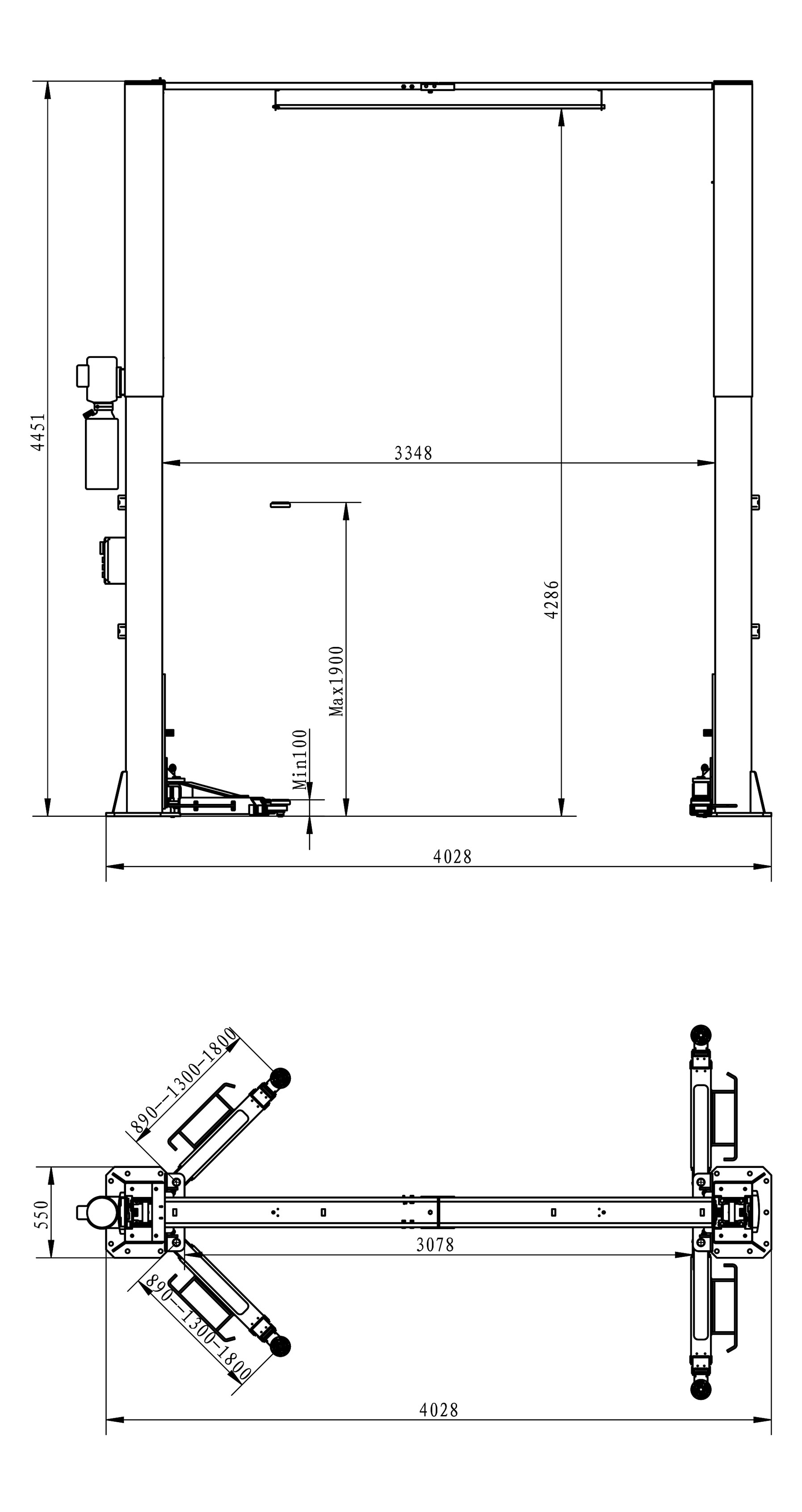● 4 pcs 3 stage arms 890-1300-1800mm;