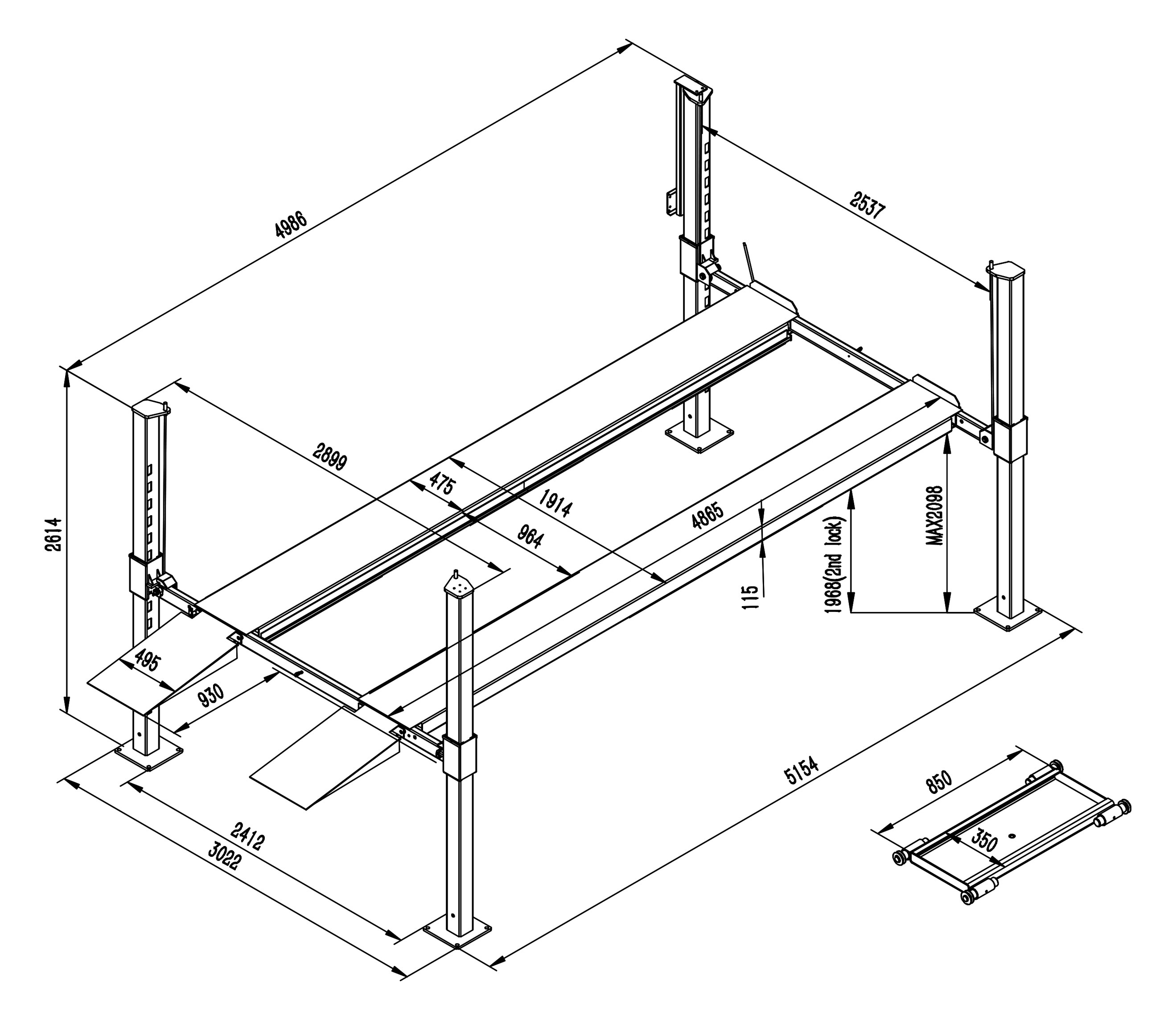 ● Slave runway adjustable to cater for various wheel base vehicles;