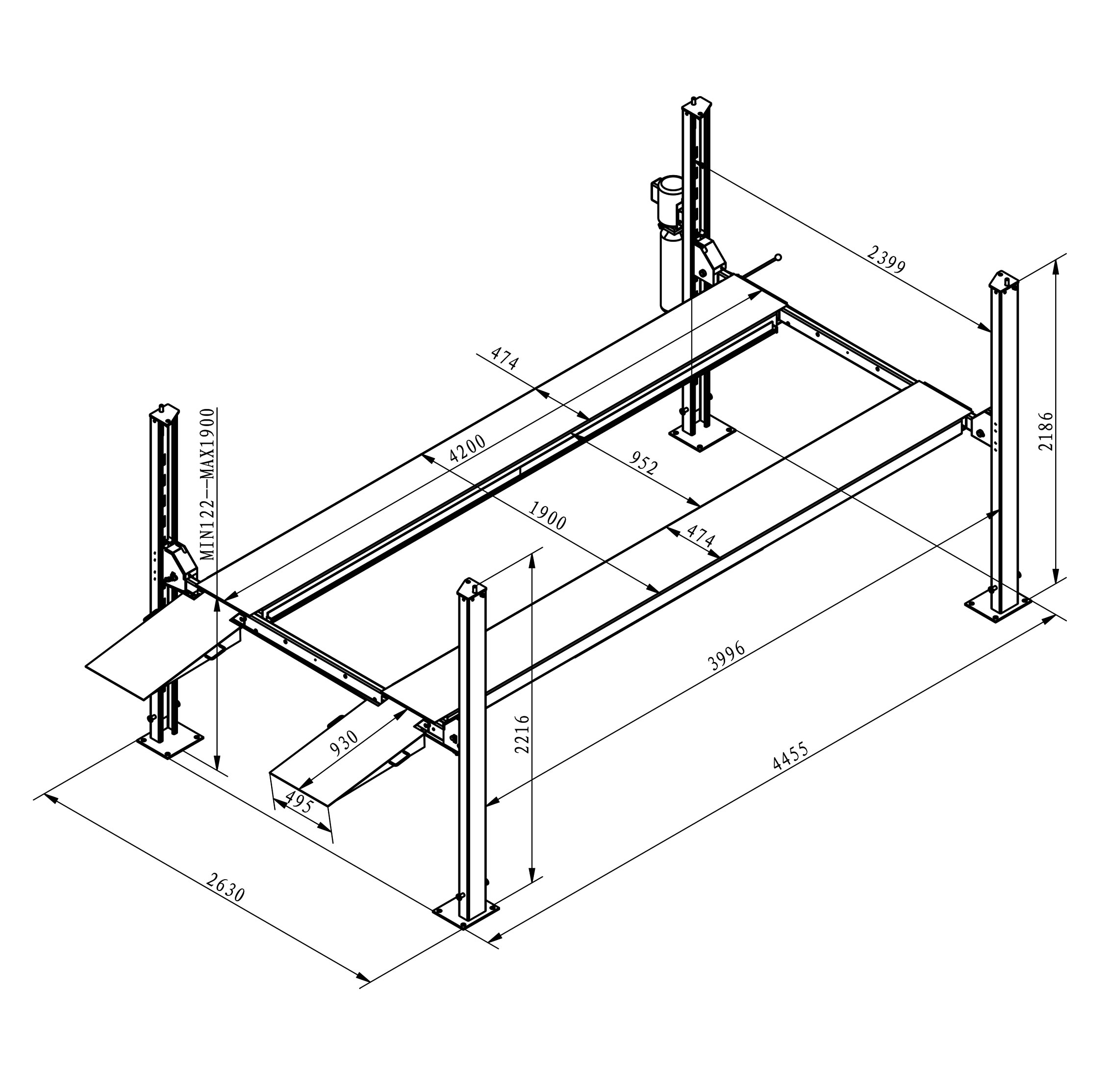 ● Slave runway adjustable to cater for various wheel base vehicles;